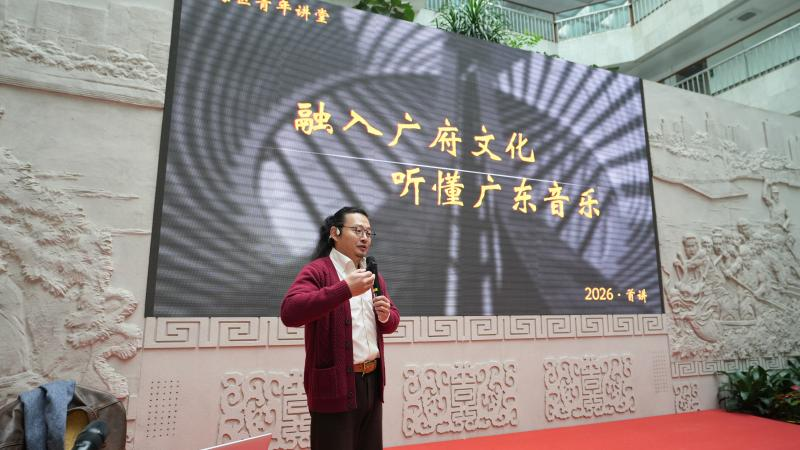 本期讲堂特邀星海音乐学院音乐学副教授吴迪担任主讲人。吴迪是从南海丹灶走出去的杰出音乐学者。他以深厚的学养和生动的语言,引领听众踏上一段从市井烟火到家国情怀的广府音乐赏析之旅。他系统性地从“写情、写景、写现实、写民俗”四个维度,剖析了广东音乐的独特美学与精神内核。