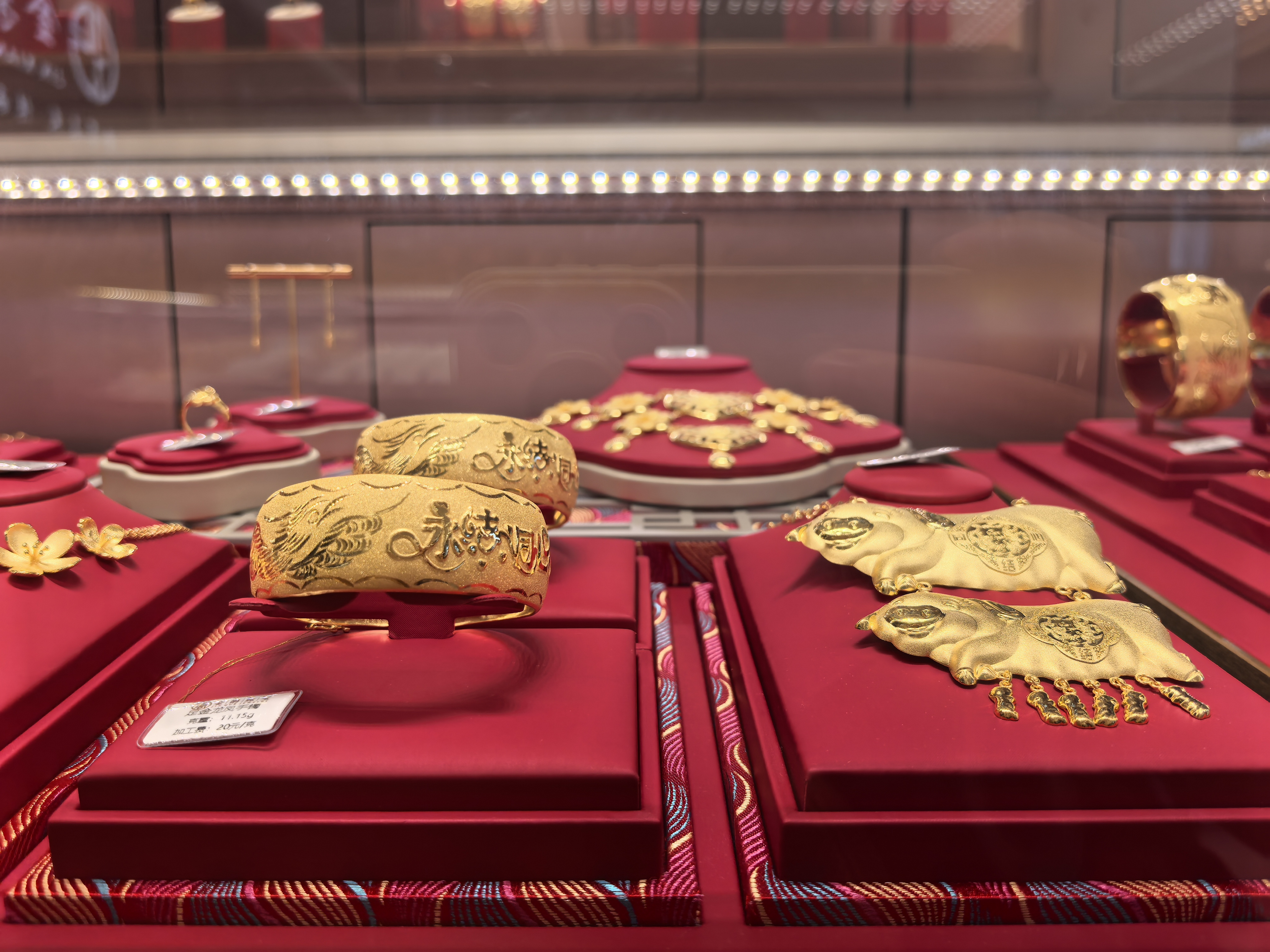 金价上涨的传导效应迅速显现于国内消费终端。记者走访佛山多家珠宝门店发现,主流品牌足金价格已集体站上高位:周大福足金售价达1390元/克,老庙黄金1389元/克,六福珠宝1388元/克,周生生1387元/克,价格进一步攀升。
