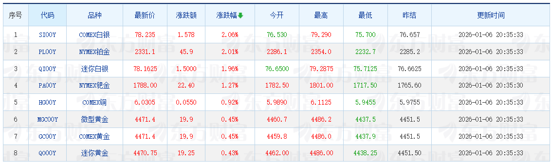 此次金价暴涨并非孤立行情,而是2025年贵金属牛市的延续。数据显示,在2025年现货黄金全年累涨超64%,COMEX黄金期货累涨约55%;白银表现更为亮眼,现货白银年度涨幅达147%,COMEX白银期货累涨超128%;铂金、钯金亦同步走高,现货铂金全年累涨逾126%,现货钯金累涨约76%,展现出全品类爆发态势。